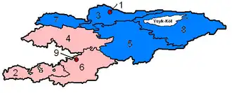 - ↑ Kirgistan: zwolennicy Bakijewa wdarli się do biura władz regionu. gazeta.pl, 17 kwietnia 2010. [dostęp 2010-04-21]. [zarchiwizowane z tego adresu (2012-07-17)]. (pol.).