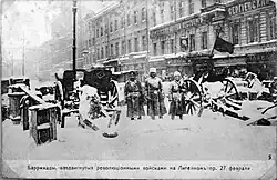 - ↑ Następnego dnia zamknięto 10 dzienników piotrogrodzkich, w ciągu następnego tygodnia kolejnych 10. Wobec słabości aparatu państwowego pełna likwidacja niezależnej prasy nastąpiła w sierpniu 1918 r. Richard Pipes Rewolucja Rosyjska Warszawa 1994; Wyd. PWN; ISBN 83-01-11521-1, s. 412.