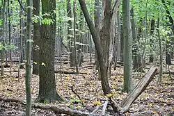 Równina zastoiska kawęczyńskiego z iłami wstęgowymi jest porośnięta lasem sosnowo-dębowo-lipowym (2 rodzime gatunki dębów) z domieszką czarnej brzozy. Na niewielkich wydmach występuje bór sosnowo-modrzewiowy.