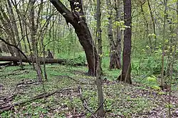 Taras porośnięty grądem niskim we właściwej dolinie zwany też tarasem praskim.