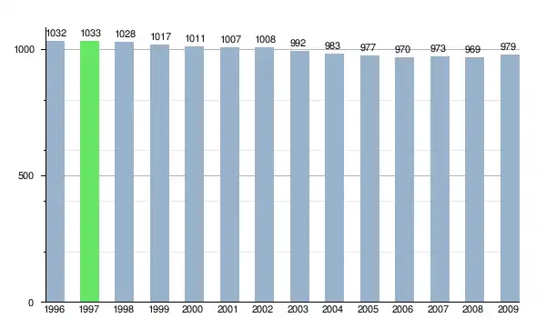 Według danych z dnia 31 grudnia 2010, wieś zamieszkiwało 981 osób, w tym 492 kobiety i 489 mężczyzn[6].