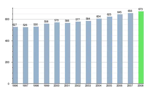 Zmiany liczby ludności w miejscowości Riečka od 1996 roku.