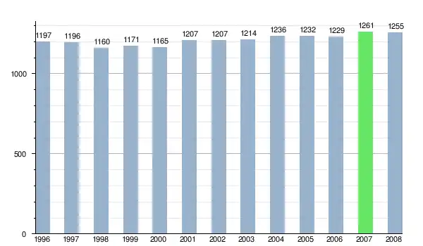 Według danych z dnia 31 grudnia 2012, wieś zamieszkiwało 1329 osób, w tym 694 kobiety i 635 mężczyzn[6].