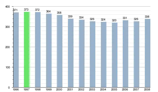 Zmiany liczby ludności w miejscowości Rimavské Zalužany od 1996 roku.