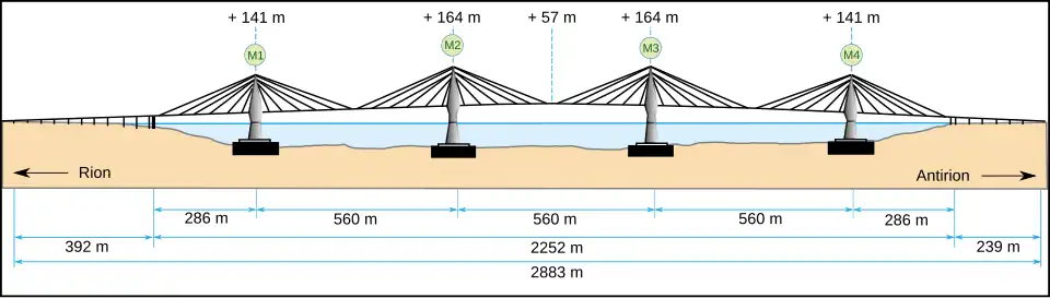 Sejsmolodzy i historycy wskazują na bardzo wysoką aktywność geofizyczną okolicy Rio[1]. Ponadto pylony mostu posadowiono na niestabilnym, skalnym rumowisku, o miąższości ok. 450 metrów, pod którym przebiega także uskok tektoniczny, oddzielający Peloponez od kontynentu. Konstrukcję zaprojektowano jako odporną na wstrząsy tektoniczne o sile co najmniej 7 stopni w skali Richtera. W chwili otwarcia był to najdłuższy na świecie most wantowy.