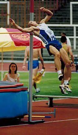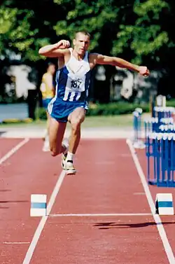 Robert Michniewski, start w lidze czeskiej w barwach AC Turnov, skok wzwyż, stadion Dukla PragaRobert Michniewski, start w lidze czeskiej w barwach AC Turnov, trójskok, stadion Dukla Praga