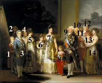 - [14] infantka Maria Ludwika (1782–1824), druga córka Marii Ludwiki i Karola IV, przyszła królowa Etrurii jako żona Ludwika Parmeńskiego,