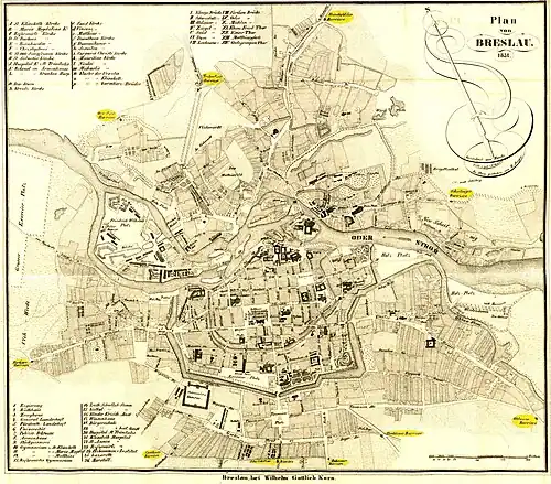 - Plan von Breslau, 1831, Friedrich August Nösselt (druk: Wilhelm Gottlieb Korn)