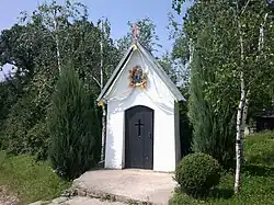 - Kaplica Męki Pańskiej – wzniesiona w I poł. XIX w., z kamienia, otynkowana, kryta blachą, zamknięta półkoliście. Od frontu nad wejściem wnęka, w której znajdują się figurki: Chrystusa Ukrzyżowanego, Matką Boską i św. Janem Ewangelistą. Wewnątrz w ołtarzu obraz Św. Rodziny (z XVIII w.), gipsowa figurka Maryi Niepokalanie Poczętej, dwa świeczniki w kształcie aniołków, obraz Matki Boskiej Częstochowskiej oraz Pietà.
