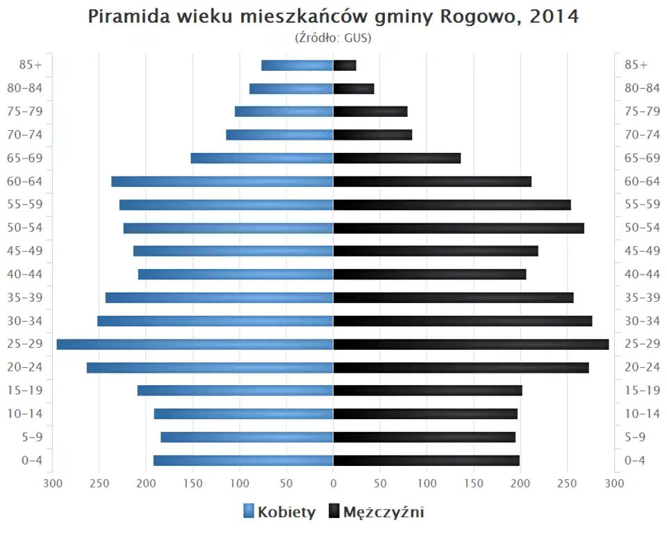 - Piramida wieku mieszkańców gminy Rogowo w 2014 roku[1].