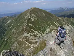 – czerwony, biegnący granią główną Tatr Zachodnich od Smutnej Przełęczy przez Rohacz Płaczliwy i Rohacz Ostry do Jamnickiej Przełęczy i Wołowca.
