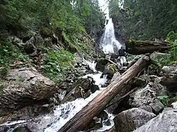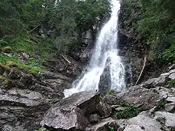 - Niżni Rohacki Wodospad lub Niżnia Spaleńska Siklawa (Nižný Roháčsky vodopád). Położony jest niżej. Jest to pochyłe, bardzo strome koryto potoku, zawalone wielkimi kłodami drzew. Nie prowadzi do niego znakowana ścieżka, ale można do niego zejść krótką, wydeptaną stromą ścieżką z tego samego szlaku. Ścieżka ta zaczyna się obok ławki dla turystów.