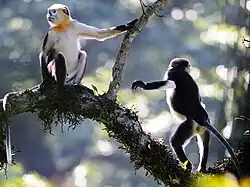 Rhinopithecus avunculus | Dollman, 1912 | rokselana zadartonosa | gatunek monotypowy | Wietnam (znany jedynie z niewielkich fragmentów lasów w prowincjach Hà Giang, Tuyên Quang, Bắc Kạn i Thái Nguyên) | DC: 50–65 cm DO: 65–92 cm MC: 8,5–14 kg |