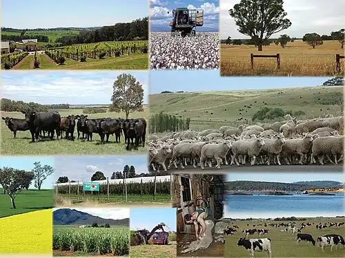 Rolnictwo w Australii – jeden z głównych sektorów gospodarki Australii. Tereny rolnicze kraju zajmują 385 mln ha (3 850 000 km²), co stanowi około połowę powierzchni kraju, przy czym największy udział mają w powierzchni stanów Queensland (79%) i Nowa Południowa Walia (72%)[1]. Pod koniec XX wieku grunty orne stanowiły około 5% powierzchni kraju, a łąki i pastwiska około 57%[2]. Australia wyróżnia się najwyższym wskaźnikiem obszaru żywicielskiego – na jednego mieszkańca przypadało na przełomie XX i XXI wieku 2,65 ha, przy średniej na świecie wynoszącej 0,26 ha[3]. Wartość produkcji rolniczej w Australii w 2014–2015 osiągnęła 54 mld dolarów[4], co stanowi około 3,7% PKB tego kraju[5].