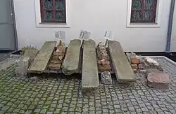 Na pewnym etapie (być może na początku XVII wieku) płyta została pocięta wzdłuż na trzy części. Jej fragmenty wydobyte w 1898 r. podczas regotyzacji Katedry. Część prawa i środkowa znajdują się w niej do dziś, wykorzystano je przy budowie stopni prowadzącej do kaplicy pw. św. Kazimierza. Środkowa część stanowi dziś najlepiej zachowany fragment grobowca, ma on obecnie ok. 3/4 pierwotnej długości. Inskrypcja i postać na grobowcu są już znacznie zatarte, ale nie na tyle, by nie dało się ich dostrzec gołym okiem. Lewą część umieszczono wraz z innymi wydobytymi wtedy fragmentami w murze otaczającym Seminarium, jako jego najwyższą część. W 2010 r. zostały wydobyte i w kolejnym roku umieszczone na terenie powstającego wówczas Muzeum Diecezjalnego. Obecnie znajdują się przed wejściem placówki od strony ul. Tumskiej[10].