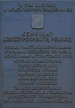 - ↑ W. Skóra, Konsulat Rzeczypospolitej Polskiej w Szczecinie w latach 1925–1939, Słupsk 2001, s. 58.