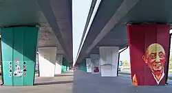 Wokół ronda i na filarach estakady od 2009 r. tworzone są murale nawiązujące do tematyki tybetańskiej, zwłaszcza w kontekście ruchu jego wyzwolenia. Tworzą one Galerię Tybetańską[9]. Galeria Tybetańska zajmuje głównie filary na północ od ronda. Jeszcze dalej, w stronę skrzyżowania al. Prymasa Tysiąclecia z ul. Wolską (ronda Zdzisława Lubomirskiego), znajduje się metalowa rzeźba Kasi Fudakowski „Krewne”, której lokalizacja nawiązuje do tzw. Galerii Samochodowej, czyli zespołu rzeźb ustawionych w 1968 r. na ulicy Kasprzaka na zachód od ronda Tybetu[10].