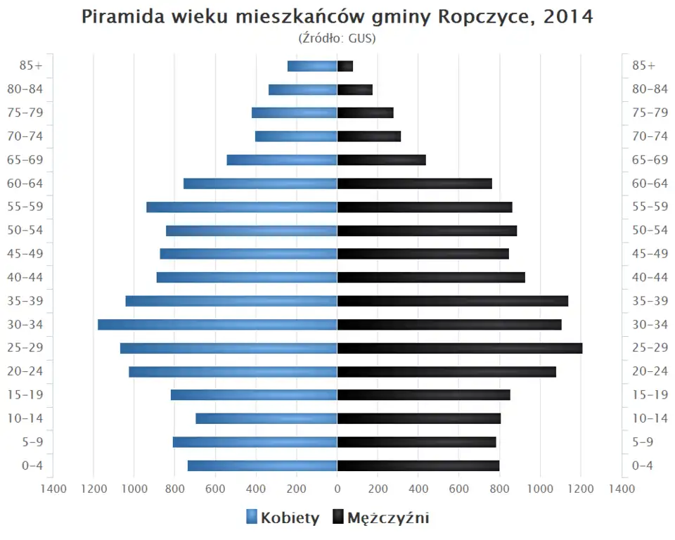 - Piramida wieku mieszkańców gminy Ropczyce w 2014 roku[1].