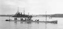 Broń podwodna: uzbrojenie uzupełniało sześć wyrzutni torpedowych standardowego wówczas kalibru 381 mm[9][d]. Po jednej stałej nadwodnej wyrzutni znajdowało się w stewach na dziobie i rufie, a cztery wyrzutnie były umieszczone w burtach, przy tym dwie były nadwodne, a dwie, umieszczone przed wieżą dziobową, podwodne (systemu Lessnera)[9][21]. W 1906 roku zdjęto cztery wyrzutnie nadwodne, w praktyce bezużyteczne na dużych okrętach[2]. Pomimo postulatów odciążenia okrętu z 1912 roku, podwodne wyrzutnie o masie 34 ton nie zostały zdjęte, ani zamienione na lżejsze Zakładu Metalowego[22][e].