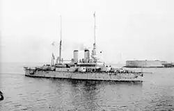 | 4 działa 254 mm (2 × II) 8 dział 152 mm (4 × II) 12 dział 47 mm 16 działek 37 mm 2 działa 63,5 mm desantowe 6 wyrzutni torpedowych 381 mm (stan początkowy)[2] | |