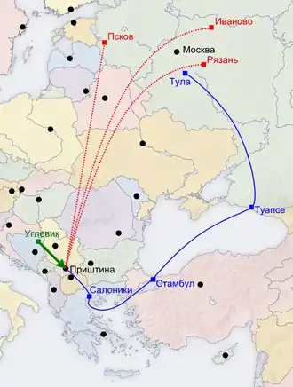 Wejście wojsk Paktu Północnoatlantyckiego do Kosowa zaplanowano na 12 czerwca 1999, dlatego 10 czerwca nakazano dowódcy rosyjskiego kontyngentu SFOR (siły stabilizacyjne NATO) w Bośni i Hercegowinie przygotowanie batalionu powietrznodesantowego do ponad 600 km rajdu na terytorium Kosowa. 11 czerwca o godz. 04:00 kolumna 206 żołnierzy, 15 transporterów opancerzonych i 35 pojazdów samochodowych wyruszyła z Ugljeviku w kierunku granicy bośniacko-jugosłowiańskiej, przed którą napisy „SFOR” przemalowano na „KFOR”. Batalion przekroczył wewnętrzną granicę serbsko-kosowską z opóźnieniem, bo dopiero w nocy 11/12 czerwca, gdy siły NATO rozpoczęły już wkraczanie na terytorium Jugosławii. Cel rajdu, czyli lotnisko w Prisztinie, Rosjanie osiągnęli 12 czerwca w godzinach porannych[1].
