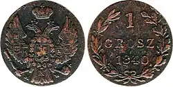 - ↑ JerzyJ. Romanow JerzyJ., РУССКИЕ МОНЕТЫ, ЧЕКАНЕННЫЕ ДЛЯ ПРУССИИ, 1759-1762, ГРУЗИИ, 1804-1833, ПОЛЬШИ, 1815-1841, ФИНЛЯНДИИ, 1864-1890, wyd. piąte, Sank Petersburg: Типография А. Бенке, 1893 . Brak numerów stron w książce