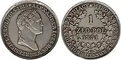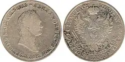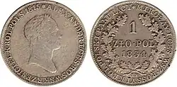 - ↑ KarolK. Plage KarolK., Monety bite dla Królestwa Polskiego w latach 1815–1864 i monety bite dla miasta Krakowa w roku 1835 XXXVIII tablic, Warszawa: Polskie Towarzystwo Archeologiczne i Numizmatyczne Komisja Numizmatyczna, 1972 . Brak numerów stron w książce