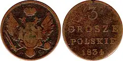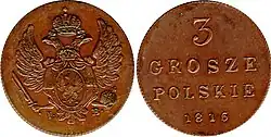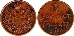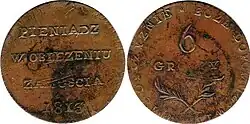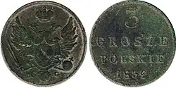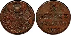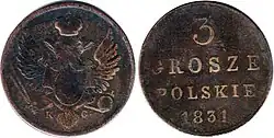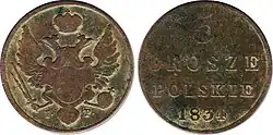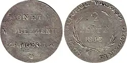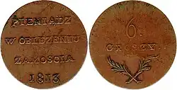 bite w miedzi; moneta w oblężeniu Zamościa w 1831 r.; jedyny znany egzemplarz znajdował się w kolekcji hr. Platera; istnienie tej monety można jedynie wytłumaczyć celami spekulacyjnymi |