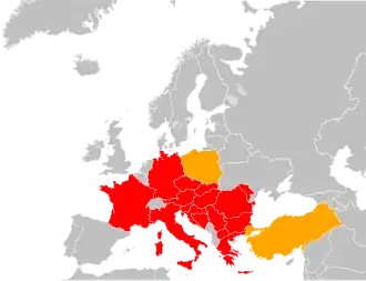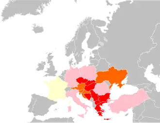 (Na czerwono oznaczone zostały kraje bez dostaw gazu, na pomarańczowo kraje ze zmienionym tranzytem gazu)