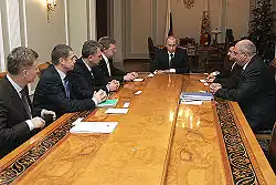 Ukraińska delegacja Paliw i Energii w składzie: minister Jurij Prodan, zastępca ministra spraw zagranicznych Kostiantyn Jelisiejew, przedstawiciel prezydenta w kwestii energetycznych Bohdan Sokołowśki i wiceprezes Naftohazu Wadym Czuprun odwiedziła Czechy jako przewodniczącego Unii Europejskiej oraz inne państwa członkowskie, w celu przeprowadzenia konsultacji w sprawie gazu ziemnego i problemów w pierwszym tygodniu 2009 roku.