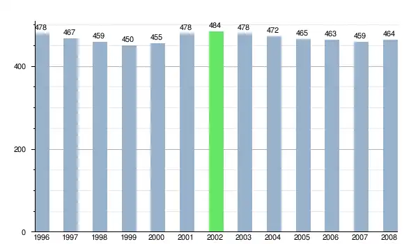 Według danych z dnia 31 grudnia 2012, wieś zamieszkiwało 455 osób, w tym 244 kobiety i 211 mężczyzn[7].
