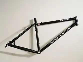 Rowery MTB wyposażane są w małe ramy (rama MTB jest mniejsza o 1-2 cale niż rama trekkingowa przeznaczona dla rowerzysty o tej samej długości nogi)[1]. W celu zwiększenia prześwitu ramy wyposażone są w wyżej położoną oś suportu. Zwiększenie zwrotności jest osiągane z jednej strony przez zmniejszenie długości ramy, z drugiej dzięki większemu kątowi osi rury podsiodłowej i główki ramy[2]. W geometrii ramy widoczne jest dążenie do zmniejszania wysokości główki ramy ułatwiające stosowanie widelców amortyzowanych o dużym skoku. Ramy rowerów MTB mogą być ramami nieamortyzowanymi (hardtail), lub amortyzowanymi (Full Suspension). Z uwagi na konieczność zmieszczenia opon o większej szerokości ramy rowerów górskich mają szersze tylne trójkąty. Ewolucyjnie zwiększa się też rozstaw haków, w których osadzona jest piasta tylnego koła od pierwotnych 130 mm (identycznie jak w rowerach szosowych) do 165 mm stosowanego w rowerach zjazdowych, a same haki zamiast tradycyjnej osi 10 mm są przystosowane do współpracy z osiami drążonymi o średnicy 12 mm. Pierwotnie ramy rowerów górskich były przystosowane do montażu hamulców obręczowych (pierwotnie typu Cantilever zastąpionych przez V-brake), obecnie standardem są mocowania hamulców tarczowych[3]. Ramy rowerów górskich wykonywane są najczęściej z aluminium, rzadziej stali lub tytanu, oraz karbonu (włókna węglowego).