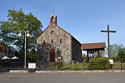 - kościół pw. Apostołów Piotra i Pawła w stylu neoromańskim z granitowego kamienia zbudowany jako kościół protestancki w latach 1844–1849[16][17]. Budowla znajduje się w rejestrze konserwatorskim[18]. Po II wojnie światowej przekazany kościołowi rzymsko-katolickiemu.