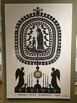- 1 2 3 Maria Samsel, Robert Andrzej Dul, Alicja Mironiuk Nikolska, Wycinanka kurpiowska z Puszczy Zielonej. Wystawa planszowa, Ostrołęka 2020.