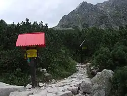 – czerwony na Rysy. Czas przejścia od rozdroża na Rysy: 3:20 h, ↓ 2:30 h[1]