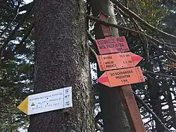 - ↑ Informacje na tabliczkach turystycznych na rozdrożu pod Wielką Przehybą (2011 r.).