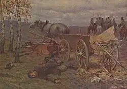 Część I opisuje losy Szymona Winrycha, który przewozi zaopatrzenie dla jednych z ostatnich walczących powstańców. Zostaje on dostrzeżony przez rosyjskich żołnierzy i zabity. Część II zawiera naturalistyczne opisy rozrywania ciała zabitego powstańca przez stado wron. W części III pojawia się chłop, który okrada zwłoki powstańca z wartościowych przedmiotów. Akcja utworu kończy się naturalistycznym obrazem źle dobitego przez chłopa drugiego konia Winrycha, który ze złamaną nogą odpędza od siebie wrony.