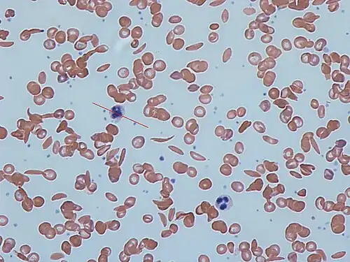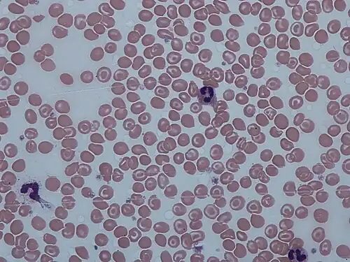 - ↑ G. Gulati, J. Song, AD. Florea, J. Gong. Purpose and criteria for blood smear scan, blood smear examination, and blood smear review.. „Ann Lab Med”. 33 (1), s. 1-7, Jan 2013. DOI: 10.3343/alm.2013.33.1.1. PMID: 23301216. (ang.).
