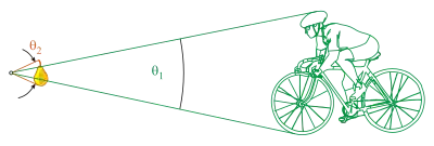 Rozmiar kątowy ciała zależy od rozmiarów liniowych tego ciała i od odległości od obserwatora, co wyraża wzór