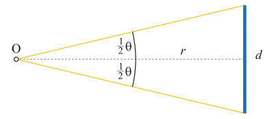 Ściśle rzecz biorąc, a zwłaszcza w przypadku kuli znajdującej się w niezbyt dużej odległości, widzianym rozmiarem nie jest średnica kuli: granice widzianego obszaru określa koło małe, a nie koło wielkie. Jeżeli znana jest średnica kuli i odległość do jej środka, wówczas do wyznaczenia rozmiaru kątowego można posłużyć się wzorem