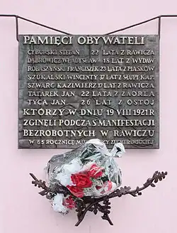 - 1 2 3 4 Jakub Latusek, Rawicz. Rocznica rozruchów głodowych - 99 lat temu na rynku w Rawiczu zginęli ludzie [online], Rawicz Nasze Miasto, 19 sierpnia 2020 [dostęp 2021-12-28] (pol.).