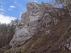 Jest to rozległa skała o wysokości do 40 m i znajduje się w lesie. Na jej stromych, miejscami pionowych skałach o wystawie północno-wschodniej wspinacze skalni poprowadzili 4 drogi wspinaczkowe o trudności IV – VI.1 w skali Kurtyki. Nie posiadały stałych punktów asekuracyjnych[1], skała była też w znacznym stopniu zarośnięta roślinnością. W latach 2019–2020 grupa wspinaczy z portalu Wspinanie dokonała jej oczyszczenia z roślinności i kruszyzny. Poprowadzono 30 nowych dróg wspinaczkowych, które zostały obite stałymi punktami asekuracyjnymi. Skała jest jednak bardzo krucha. Mimo ogromnej pracy jaką wykonano, nadal zdarzają się luźno z masywem połączone skały i niepewne chwyty[2].