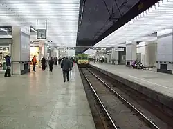 Rozwiązanie hiszpańskie jest zastosowane na stacji Warszawa Śródmieście, przy czym obecnie nie wyodrębnia się peronów tylko dla wsiadających i wysiadających. Do remontu w 2006 roku widoczne były napisy informujące, że dany peron jest przeznaczony tylko dla wsiadających lub wysiadających. Były one jednak całkowicie ignorowane przez praktycznie wszystkich pasażerów, a za łamanie tych zasad nie groziły żadne sankcje. Po remoncie postanowiono nie umieszczać ponownie tych napisów.