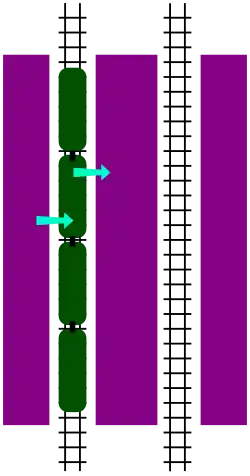 Wykorzystanie takiego układu znacząco przyspiesza wymianę pasażerów. Podróżujący mogą być zobligowani do wsiadania z jednej, a wysiadania z drugiej strony pociągu. Najczęściej spotyka się trzy perony (jeden wyspowy i dwa boczne) obsługujące dwa tory prowadzące w przeciwnych kierunkach.