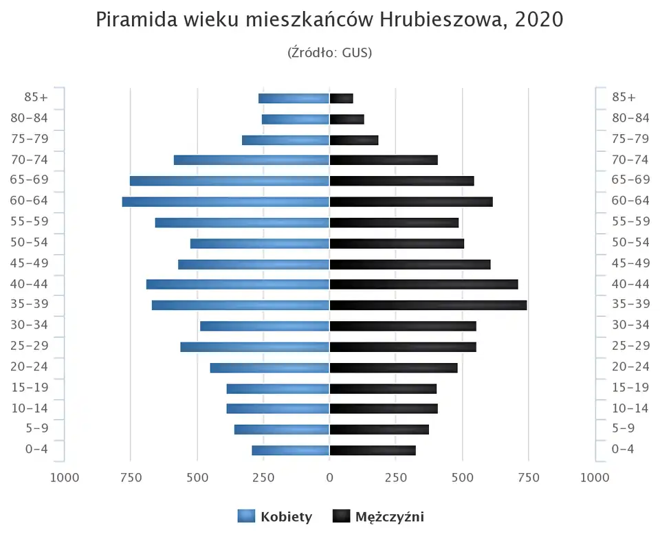 - Piramida wieku mieszkańców Hrubieszowa w 2020 roku[21].