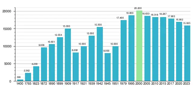 Według danych z 31 grudnia 2023 r. miasto miało 15 935 mieszkańców.