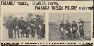 - ↑ Falanga Walczy, Falanga Czuwa. Falanga Pismo Narodowo-Radykalne, 1938-04-12. [dostęp 2018-11-20].