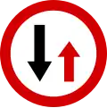 | zwężony odcinek jezdni | ustąpić pierwszeństwa pojazdowi jadącemu z naprzeciwka | |