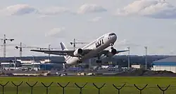Statek powietrzny wykonujący loty w sąsiedztwie lotniska oznacza m.in. statek wchodzący w krąg nadlotniskowy lub go opuszczający[1].