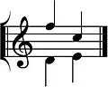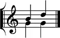 | Ruch przeciwny rozbieżny – głos górny wznosi się, a dolny opada. | ![]() |